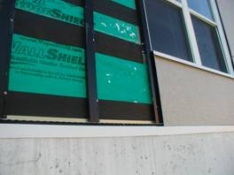 In general, only minor modifications to conventional stud wall construction are required. Care should be given in the selection of materials to contribute to a flat, aesthetically pleasing finished installation. Exterior sheathing, protected by the weather barrier, provides a leveling plane for the panel assembly and functions as a secondary barrier to air and water infiltration. Extruded Aluminum Hat Channels are positioned continuously at each panel perimeter and to intermediate Extruded Aluminum J-